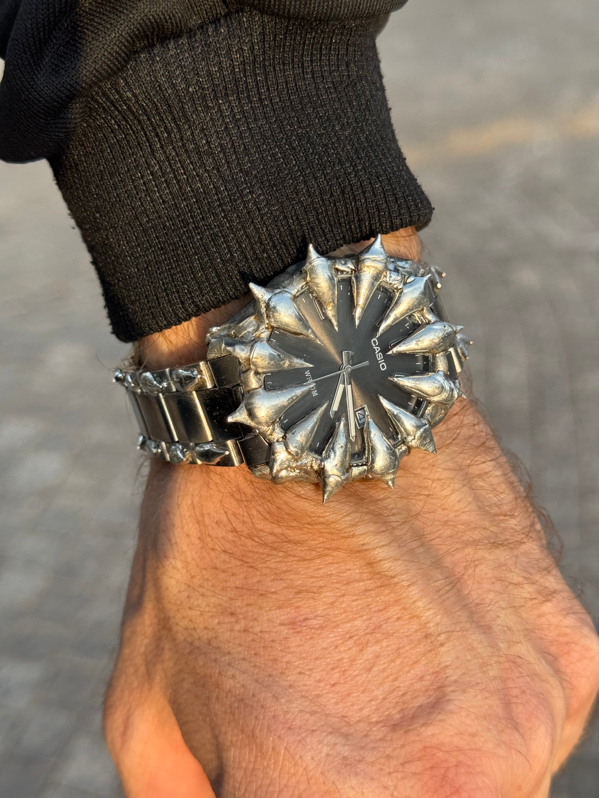 השעון הזה משלב בולט את הזוהר של תכשיט יוקרתי עם הדיוק של השעון איכותי. כל דגם בעבודת יד מגיע עם עיצוב מרהיב שמושך תשומת לב בכל מקום. בזכות חומרים עמידים ואטימות למים, השעון נשאר מבריק ומרשים לאורך זמן. רצועת הנירוסטה והקוצים הנועזים יוצרים מראה חד, ייחודי ואופנתי – שילוב מושלם בין סטייל לפרקטיות, לאביזר שתמיד בולט מעל כולם